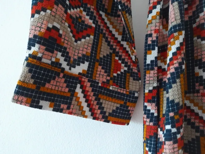 Portée une seule fois, état impeccable. Entièrement doublée. Longueur : 98 cm. Entièrement boutonnée sur le devant et ceinture avec passants.