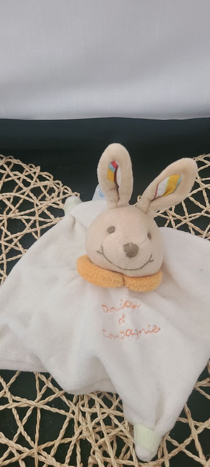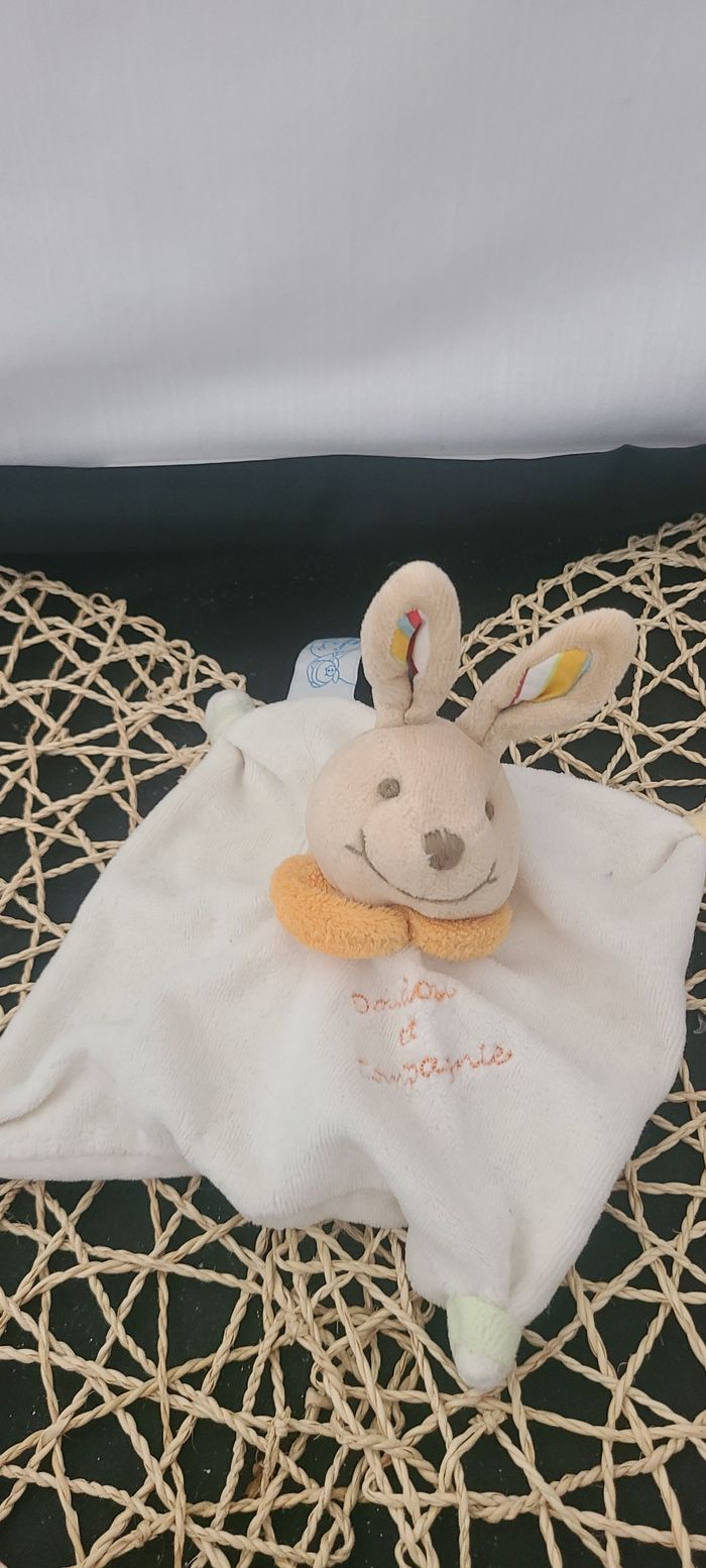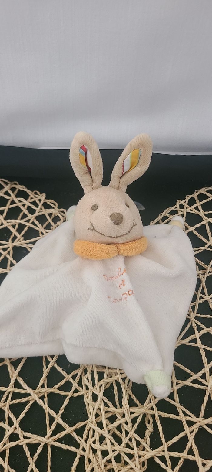 Doudou plat lapin DOUDOU ET COMPAGNIE mini doudou col orange 15
