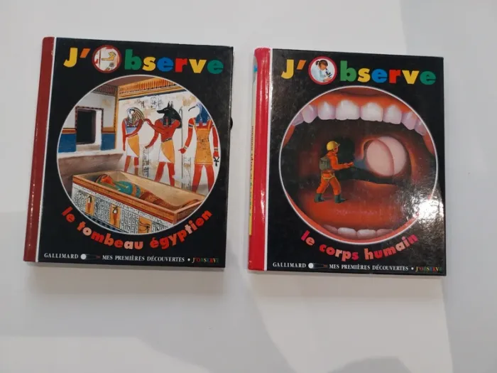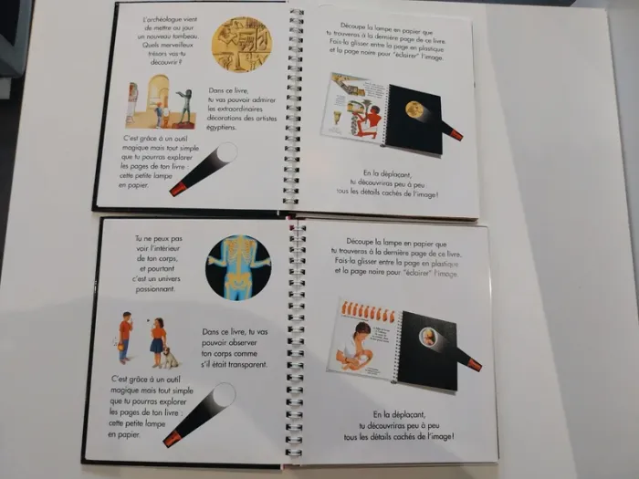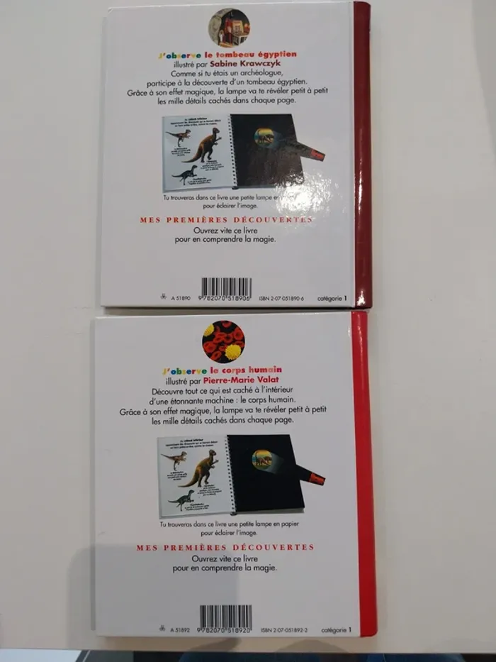 Lot de 2 livres mes premiers découvertes J'observe le corps humaine J'observe le tombeau égyptien Avec lampe