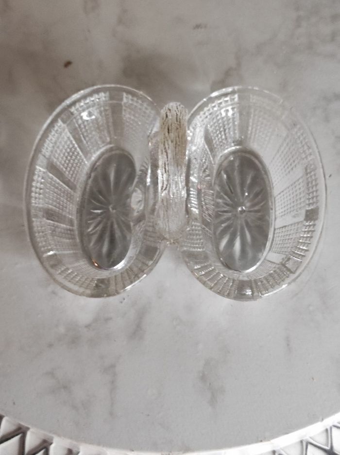 Salière poivrière ancienne en verre moulé - photo numéro 3