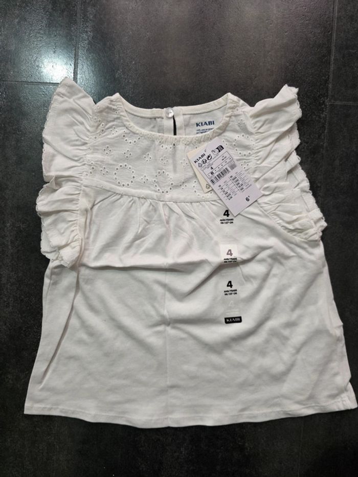 Blouse t shirt Manches courtes volants épaules blanc dentelle froufrou taille 4 ans neuf avec étiquette Kiabi
