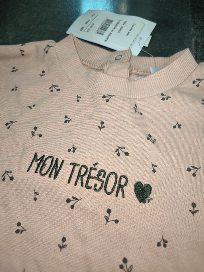Robe pull bébé fille 3 ans Vertbaudet rose et gris fleur fleuri liberty mon trésor neuve
