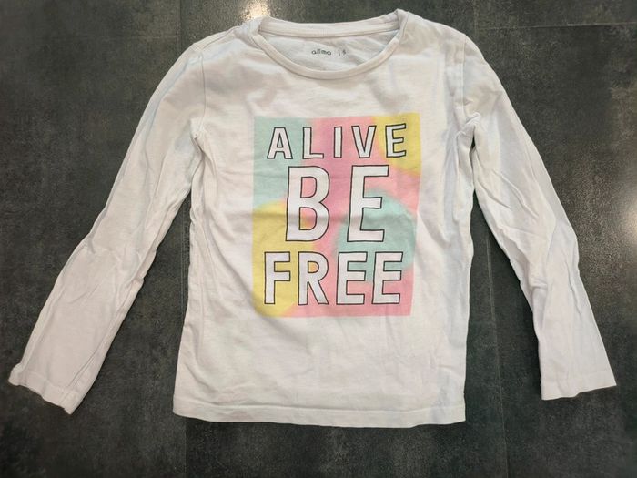 T shirt fille manches longues blanc et multicolore arc en ciel taille 5 ans kiabi