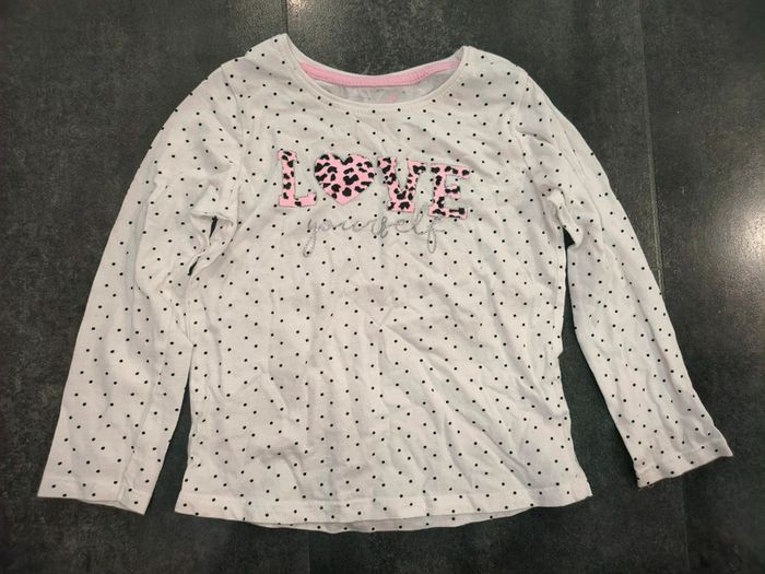 T shirt fille manches longues taille 4 ans primark blanc rose love léopard argenté