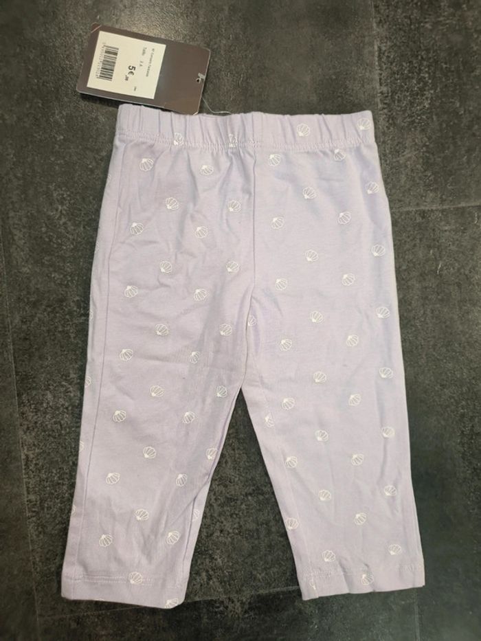 Pantacourt corsaire bébé fille 3 ans Charlie et prune violet coquillages blanc neuf