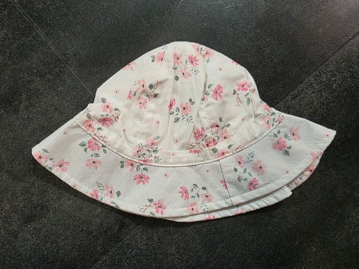 Chapeau bébé fille blanc rose vert fleur fleuri liberty taille 12 18 mois c&a