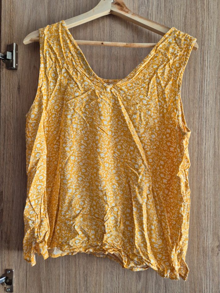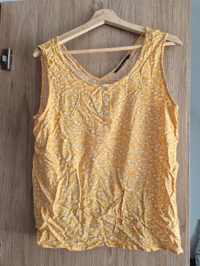Débardeur Kiabi Jaune avec motifs fleurs, porté 1 ou 2 fois. Tres bon etat Taille L. #LullolyFemmeL