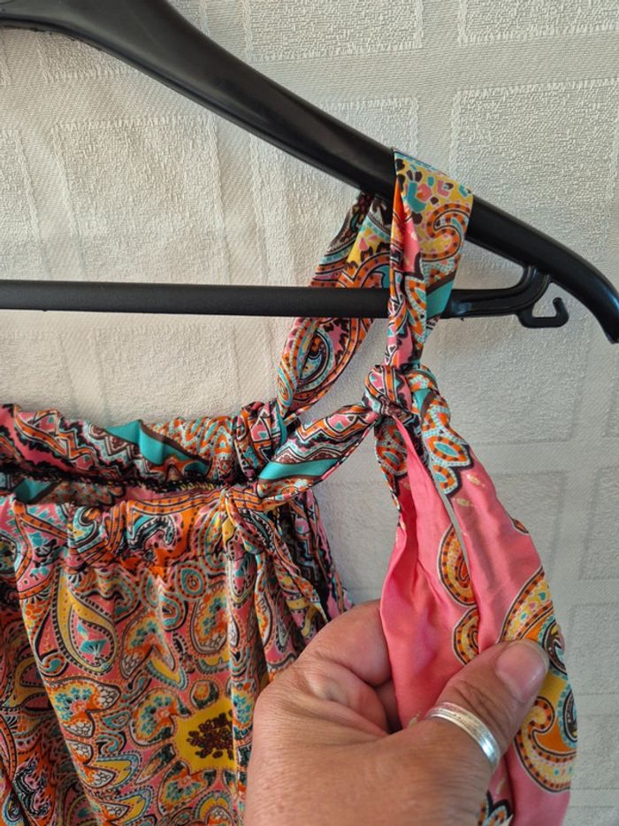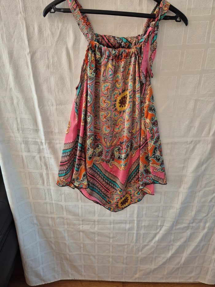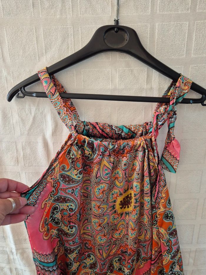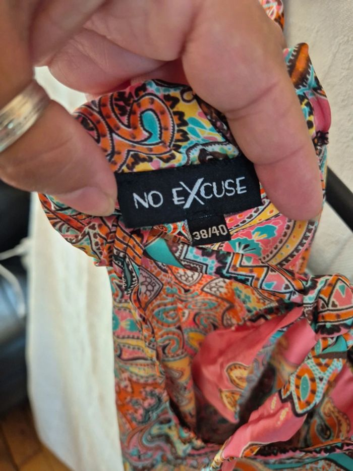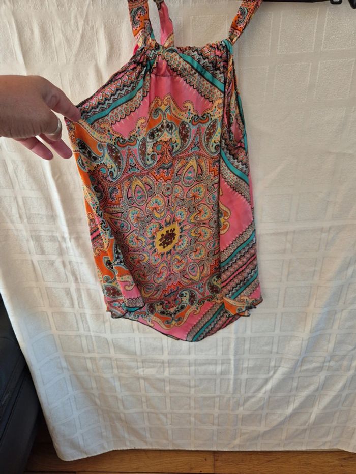 ⬇️mes autres annonces pour femme en taille 38 👉 #cg89femme38 ⬇️mes autres annonces pour femme en taille 40 👉 #cg89femme40 une blouse ou top avec lien coulissant qui sert de bretelle, originale avec les pointes devant et derrière et l'imprimé coloré. très bon état - taille 38 - taille 40 - marque no excuse #top #blouse #debardeur #tshirt