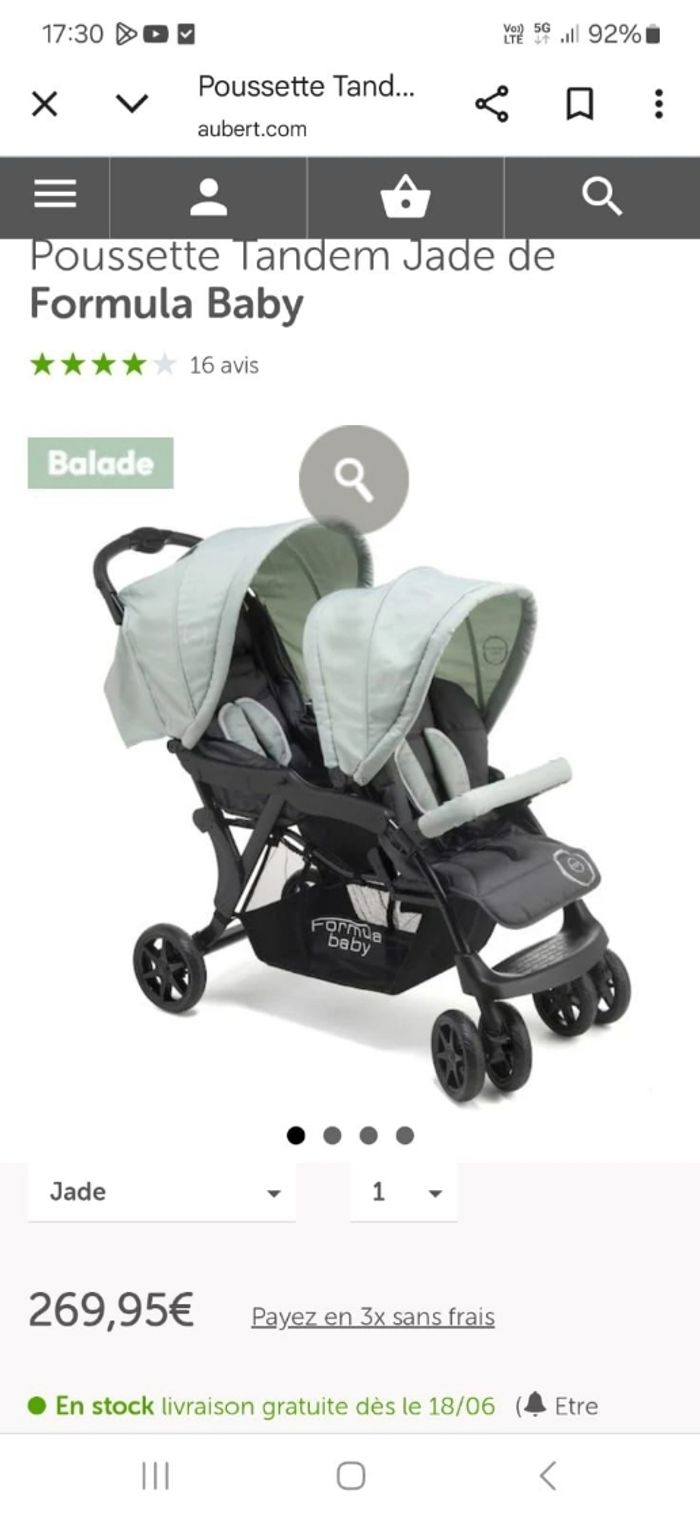 Vends poussette double servis que trois fois de la marque Aubert acheté 269,75 euros je la vend au prix de 110 Euros pour cause de déménagement. Pour tous renseignements message en privé