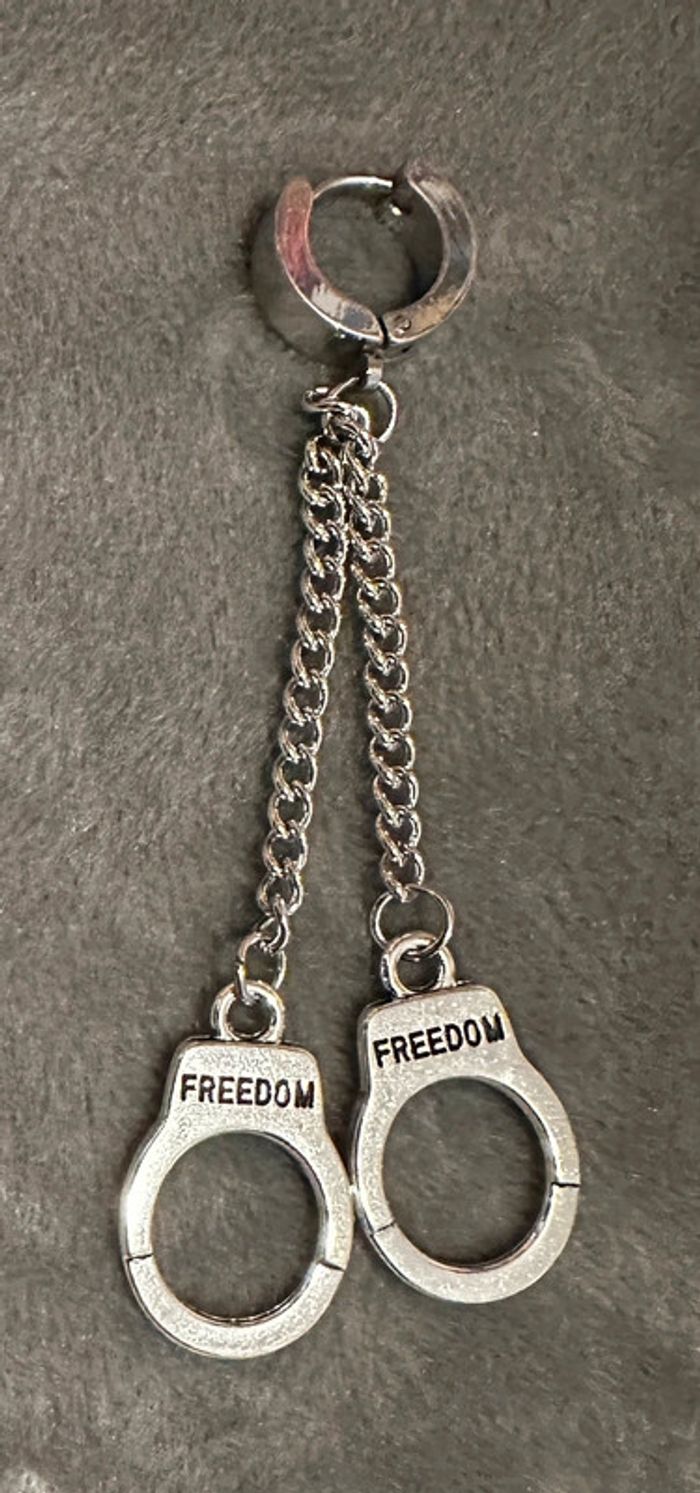 Boucles d’oreilles fantaisie « Menottes » jamais portées.