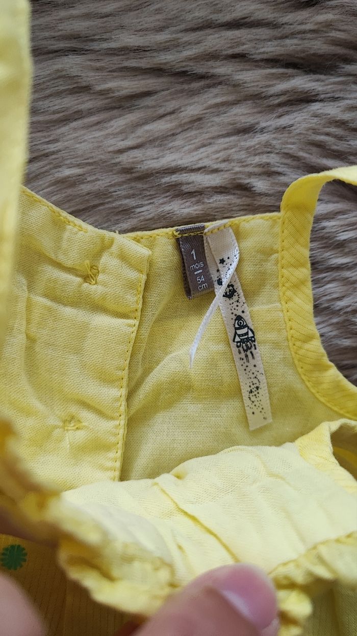Robe jaune avec boutons dans le dos. 100% coton De la marque orchestra En taille 1 mois En très bon état maison non fumeur #laetitia33700filleunmois