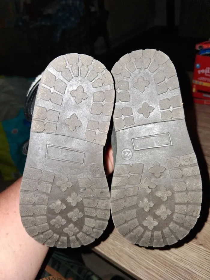 Bonjour, je vends cette paire de chaussures montantes noires et cremetaille 22 en très bon état. Manque 1 lacet.