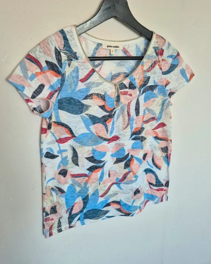 📌 Lot 20% de remise pour l'achat de 5 articles, suite ... T-shirt blanc avec des fleurs bleu et rouge, manche courte, état neuf, ➡️Largeur à plat sous les bras  45 cm ➡️Longueur 55 cm ➡️ Étiquette composition manquante certainement en lin ⭐ Excellent état ✈Envoi rapide des colis 💗 Abonnez vous à mon profil, nombreux articles ajoutés régulièrement ! 🌸 Tapez Laetitresors pour voir mes annonces #laetitresors_tshirt36 #tshirt #grain #malice #manche #courte #bleu #rose #rouge #blanc #lin #gdm #laetitresors