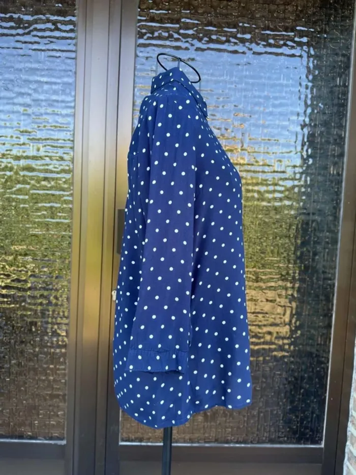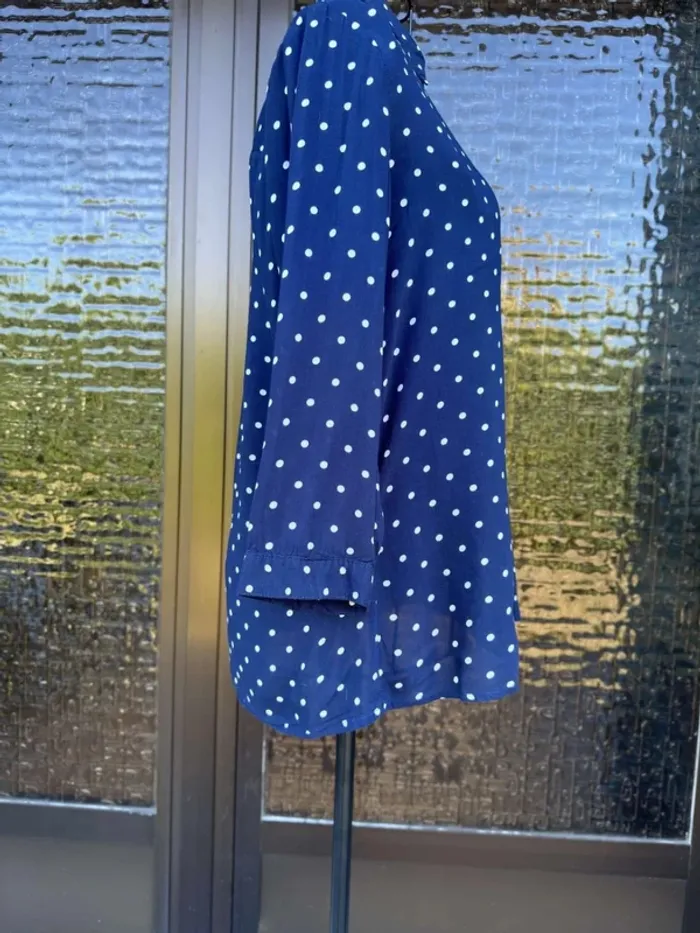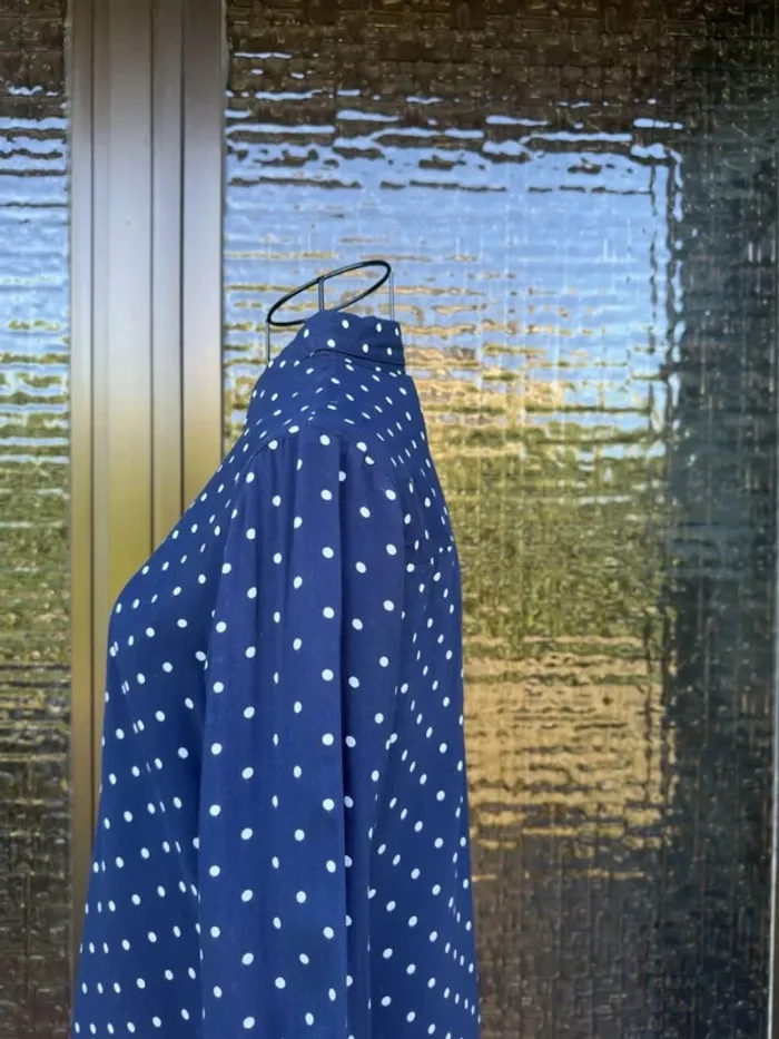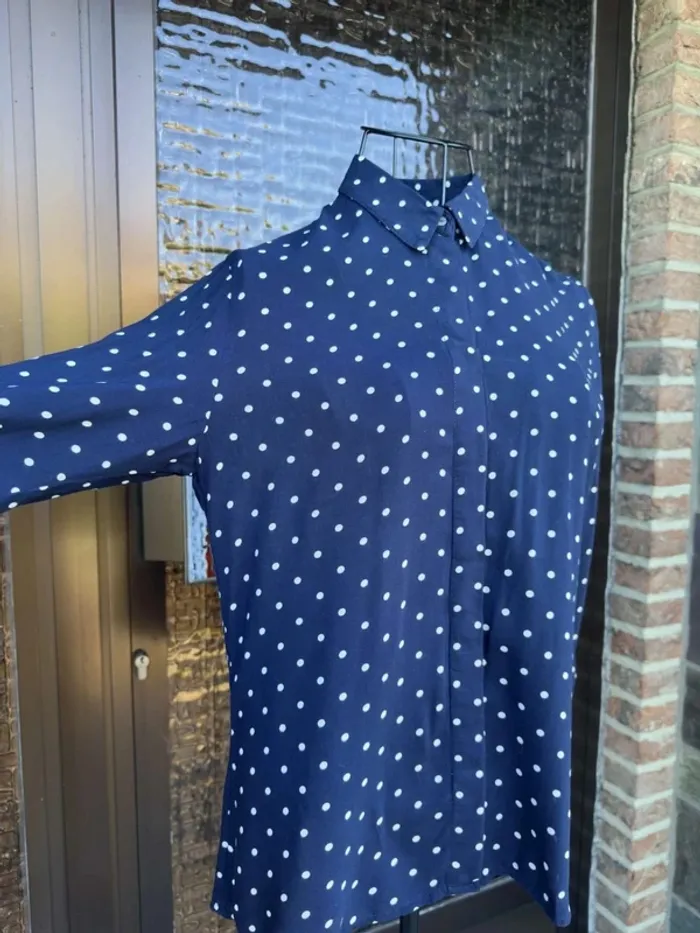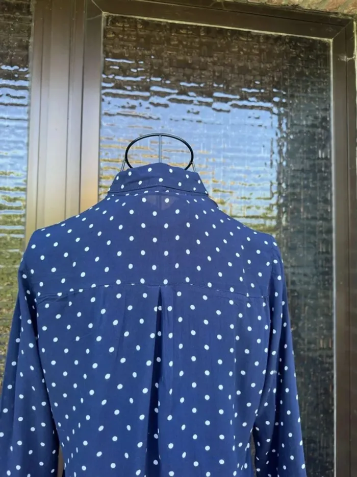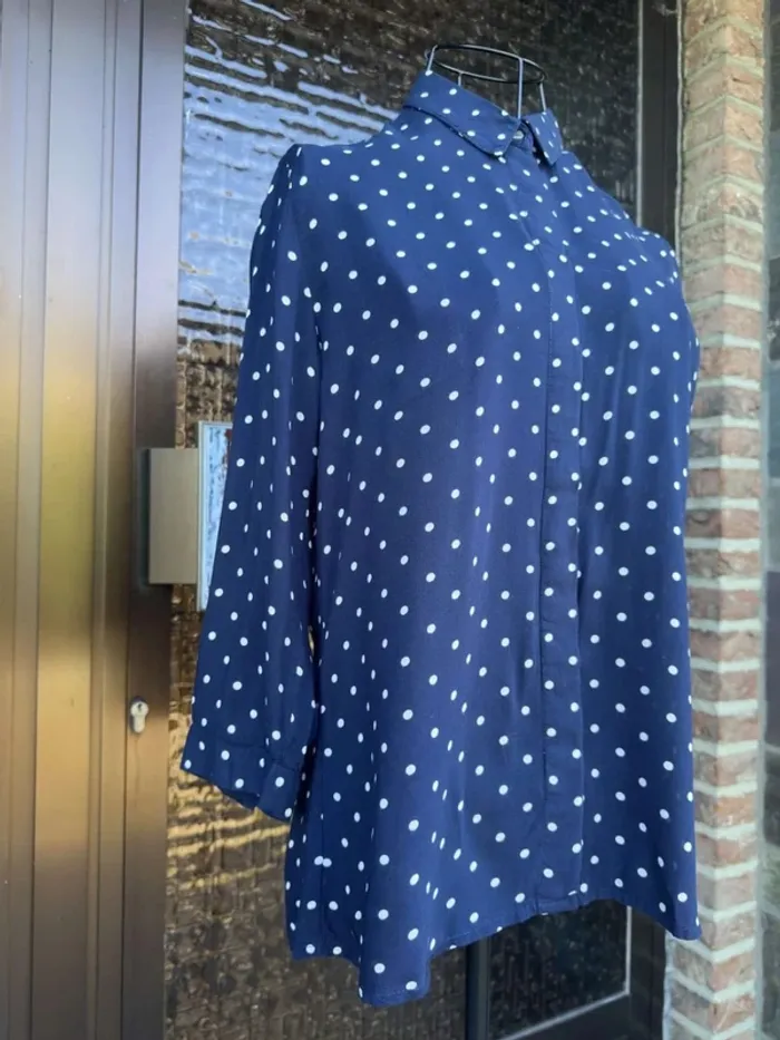 Chemise légère bleu marine à pois blancs – Manches 3/4 – Taille XS/S Élégante et intemporelle, cette chemise bleu marine à pois blancs est la pièce parfaite pour un look raffiné au quotidien. Son tissu léger et fluide assure un confort optimal, tandis que ses manches 3/4 apportent une touche féminine et moderne. ✦ Caractéristiques : • Coupe : droite et fluide, facile à porter et à associer • Manches : 3/4 légèrement évasées • Matière : légère, agréable sur la peau Pourquoi on l’adore ? Polyvalente, elle se porte aussi bien au bureau avec un pantalon habillé, en sortie avec un jean slim, ou en soirée avec une jupe taille haute. Un basique chic à pois qui traverse les saisons sans prendre une ride 🌸 - Taille : L'étiquette de taille n'est plus présente , mais je dirais qu'elle convient à un XS / S ( voir mesures ) - Mesures: Longeur --> 60 cm ( 64 cm à l'arrière ) Epaule à épaule --> 38 cm Aisselle à aisselle --> 49 cm #ChemisePois #XS #S #ModeFéminine #LookChic #ChemiseLégère #PoisStyle #ChicIntemporel #VintedFinds