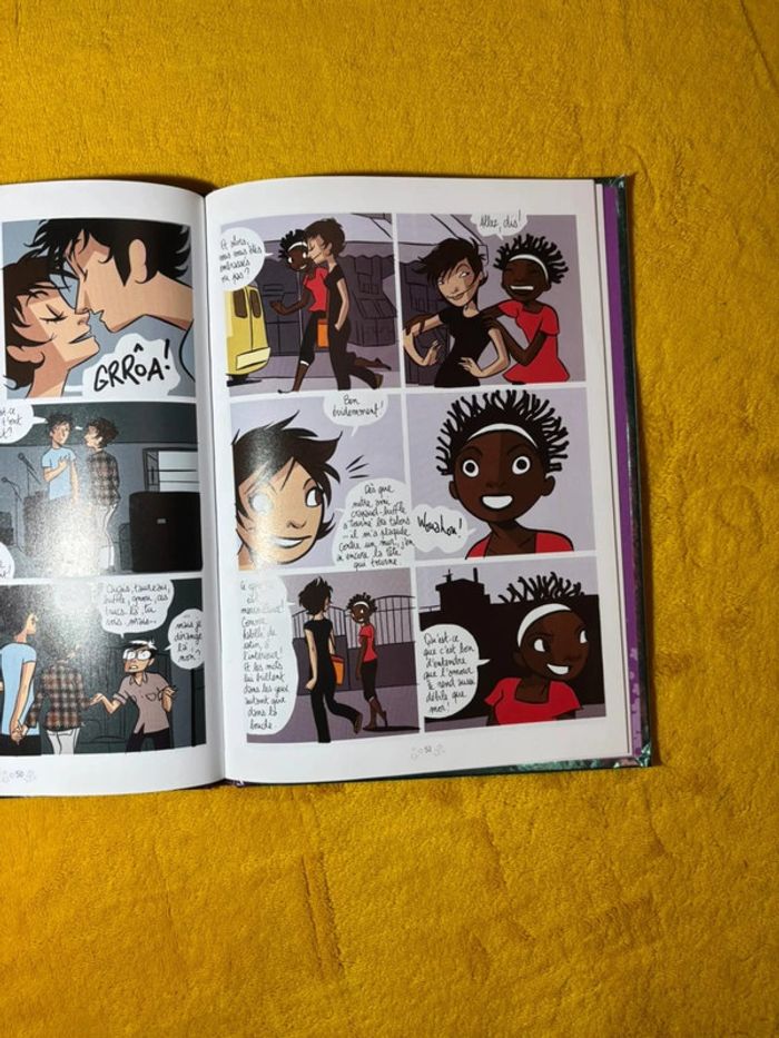 La Bd des filles Vol. 2 Battements de coeurs Etat : Très bon état , écriture sur l'arrière de la couvverture ( voir photo ) Editeur : Dargaud Fleurus Date de publication : 25 Septembre 2008 EAN / ISBN : 9782215046165 Longueur : 23.7 cm Largeur : 17 cm Tranche d'age : à partir de 13 ans Alors que le lycée continue, Inaya décide, sous la pression d'un professeur, de se mettre au demi-fond, sans se douter qu'elle découvrira une bonne raison de courir... après un beau sportif. Yeuse, quant à elle, va toucher son rêve et être prise dans la troupe d'une comédie musicale. Amandine et Noëlle, pas en reste, devront elles aussi affronter l'adolescence et ses tourments. Quatre beaux portraits de filles de 15 ans, quatre copines et leurs premiers battements de coeur... #offre #faireoffre #negociable #negociation #demenagement #petitcolis #envoirapide #mesure #mesureapproximative #tresbonetat #trespeuporte #aucundefaut #commeneuf #trespeuutilise #mesure #tbe #mesureapproximative #fille #ado #jeune #jeunesse #histoire #fiction #labddesfilles #tome2 #vol2 #labddesfilles2 #bandedessinee #fleurus #dargaud
