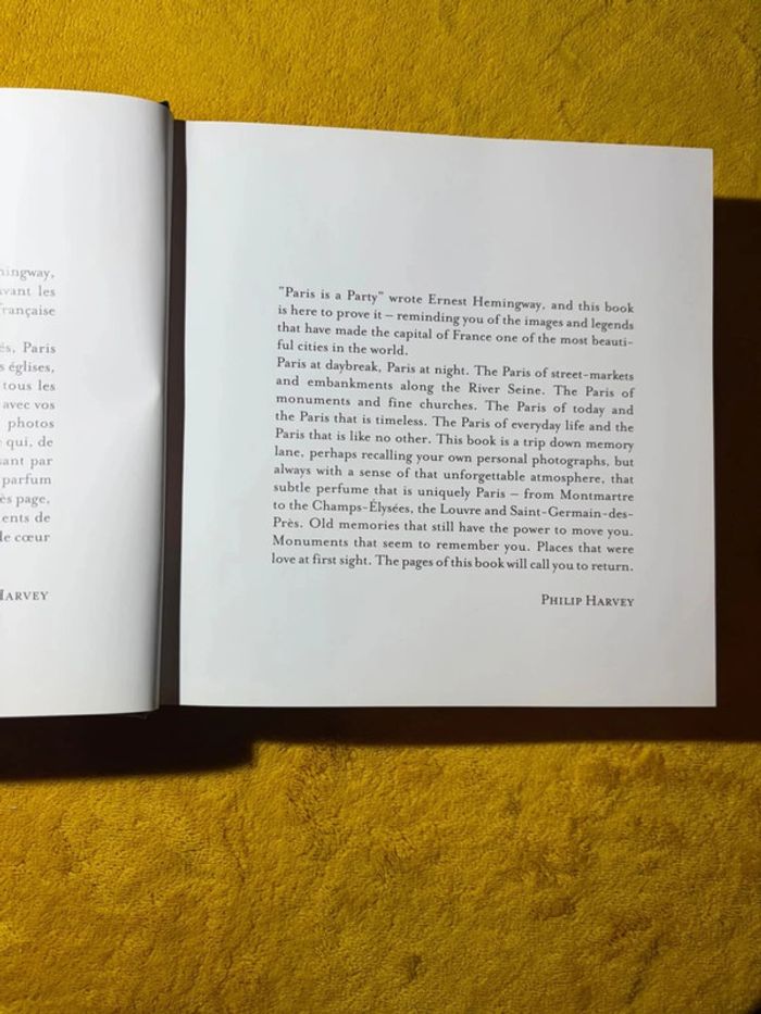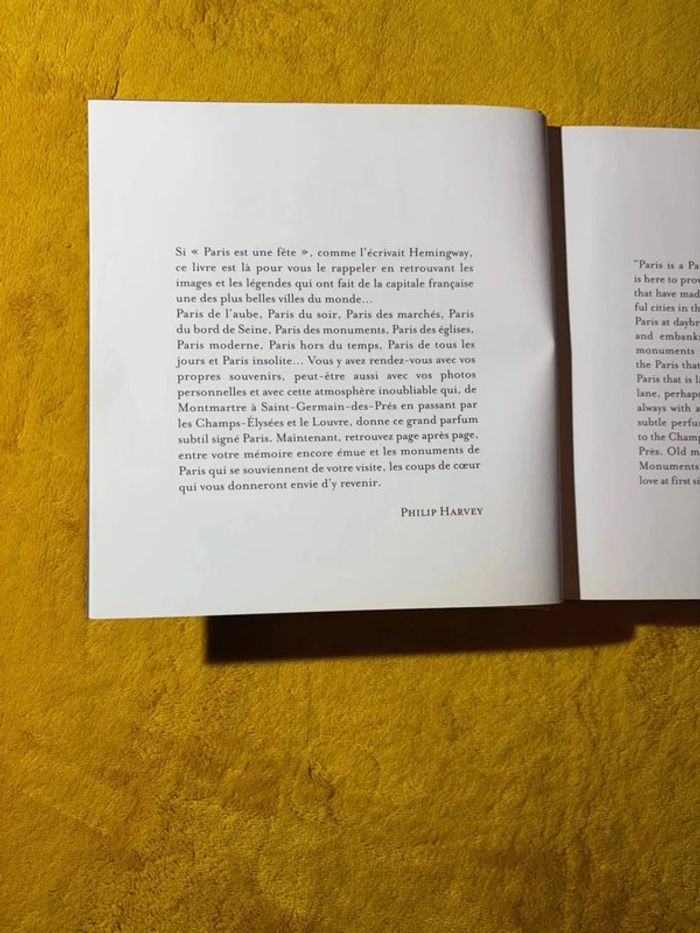 Livre Paris Coups de Coeur Photographe : Philip Harvey Livre Format carré , épais , cartonné EAN / ISBN : 9782842777920 Du Pont Neuf au musée du quai Branly, en passant par Notre Dame, Montmartre et l’Observatoire : toute la ville lumière, concentrée en 384 pages; Philippe Harvey a su saisir dans son objectif les multiples facettes de la capitale : Paris de l’aube, Paris du soir, Paris des marchés, Paris du bord de Seine, Paris des monuments, Paris des églises, Paris moderne, Paris hors du temps, Paris de tous les jours et Paris insolite. Toutes les photos que vous auriez rêvé saisir ! #offre #faireoffre #negociable #negociation #demenagement #petitcolis #envoirapide #mesure #mesureapproximative #tresbonetat #trespeuporte #aucundefaut #commeneuf #trespeuutilise #mesure #tbe #mesureapproximative #paris #france #voyage #amour #livrevoyage #livrephoto #photo #photographe #coupdecoeur #fomratcartonne #carton #epais #carre