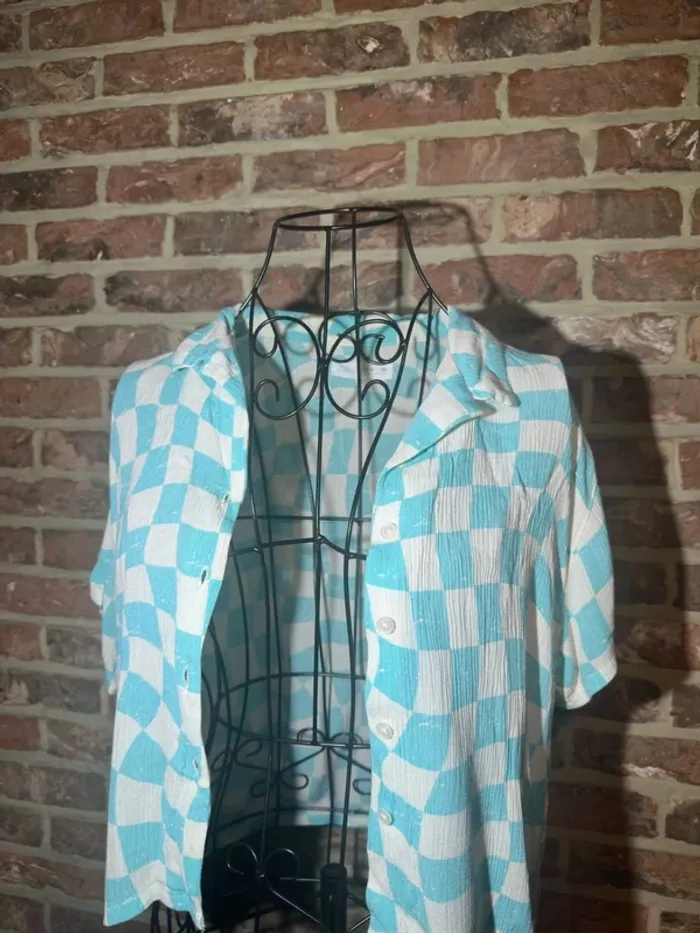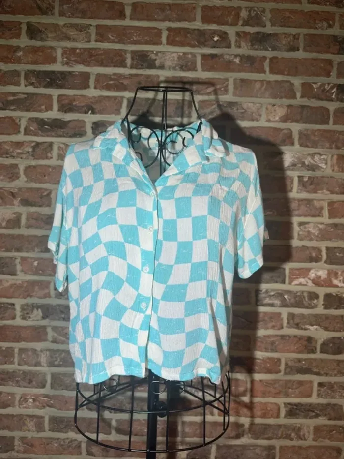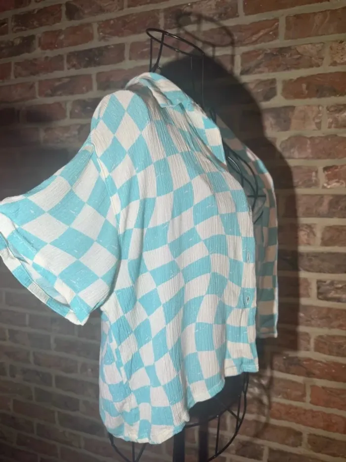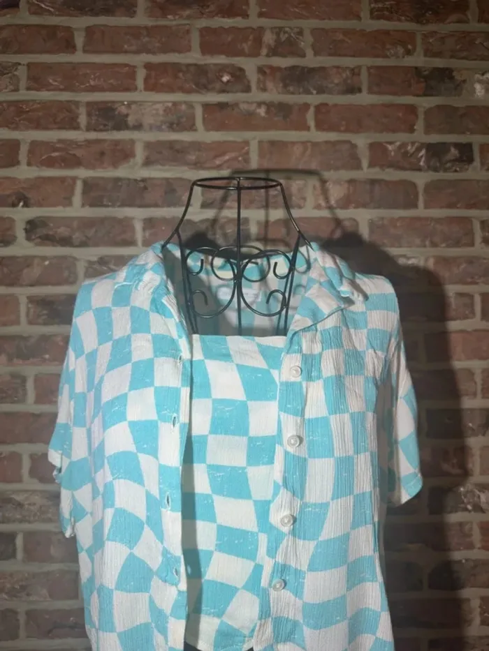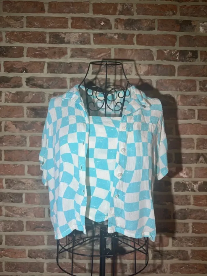 Ensemble top / débardeur et chemise Bleu clair et blanc vichy / à carreaux Top bretelle fine Chemise légerment large, bouton tout le long - Marque : Zara - Taille : taille 13 / 14 ans 164 - Composition : viscose polyester élasthanne - Etat : Très bon état , aucun défaut - Mesures : Longeur --> 38 cm Epaule à épaule --> 26 cm Aisselle à aisselle --> 36 cm Chemisier : Longeur --> 45 cm Epaule à épaule --> 46 cm Aisselle à aisselle --> 48 cm #chemisier #chemise #chemisemanchecourte #top #debardeur #vichy #carreaux #bleuclair #blanc #bleu #turquoise #bouton #chemiselarge #chemiseoversize #viscose #polyester #viscose #bretelle #bretellefine #ensemble #lot #ete #mignon #printemps #offre #faireoffre #negociable #negociation #demenagement #petitcolis #envoirapide #mesure #mesureapproximative #tresbonetat #trespeuporte #aucundefaut #commeneuf #trespeuutilise #mesure #tbe #mesureapproximative #zara #13ans #14ans #taille13ans #taille14ans #164 #158 #152 #fille #ado #jeune #mode #tendance #oldmoney #classe #haut #legerementtransparent #zaragirl #girl #enfant #manchecourte #manchetshirt