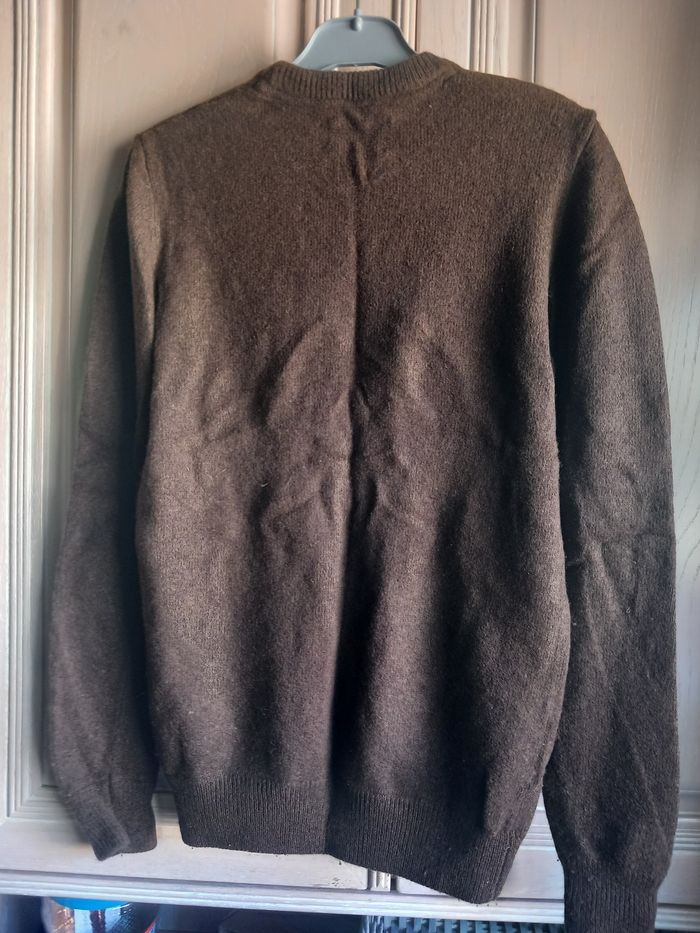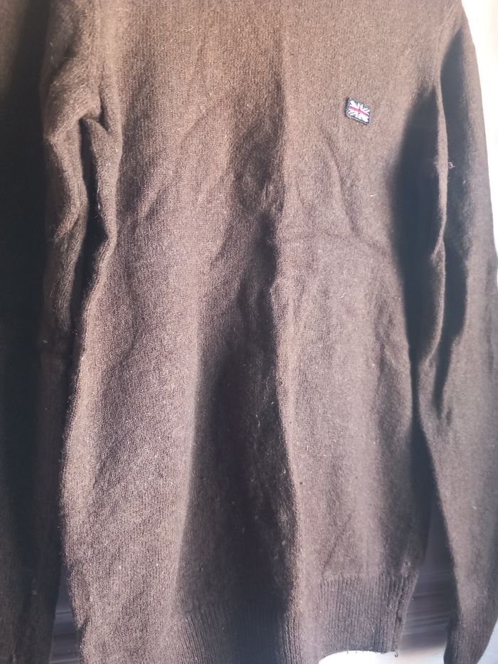 Pull homme Matières 80% laine et 20% nylon Motifs drapeau anglais Taille S Couleur marron Marque Bizzbee Dimensions approximative 70cm de long : largeur sous aisselles 48cm : largeur d'épaules 40cm : longueur de manches 72cm En très bon état