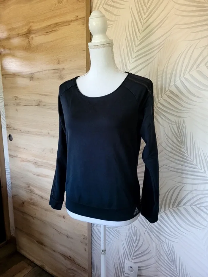 Pull femme taille S noir avec brillant sur bras Adidas - photo numéro 1