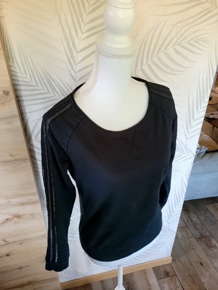 Pull femme taille S noir avec brillant sur bras Adidas - photo numéro 2