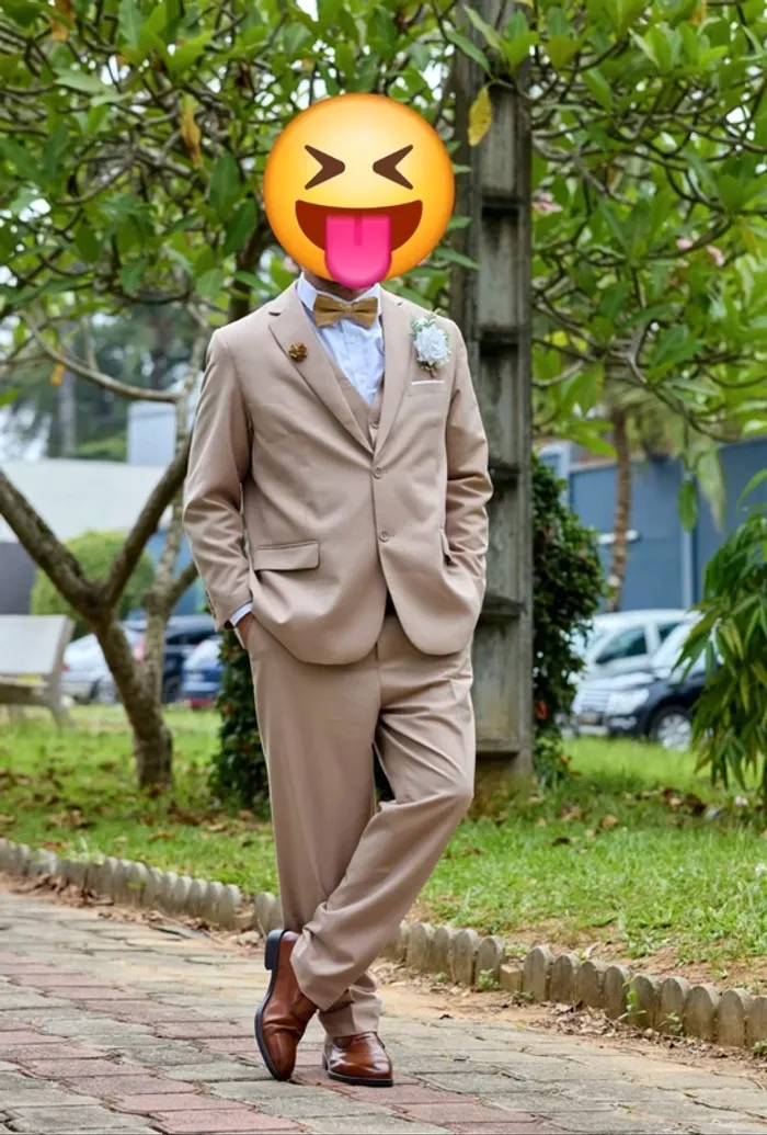 🌼Vends Magnifique Ensemble costume pour homme, comprenant 7 pièces: Veste, pantalon, gilet, Noeux papillon et deux boutonnières, Ensemble de très bonne qualité, servi qu'une seule fois pour notre mariage, mon époux fait 1,73 pour 78 kg, état impeccable #mayevêtementhomme