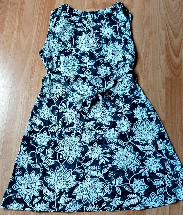 Robe bleue foncee fleurie cache coeur - photo numéro 1