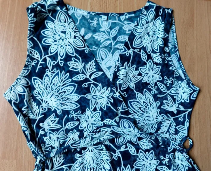 Robe bleue foncee fleurie cache coeur - photo numéro 6