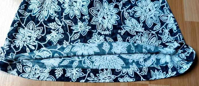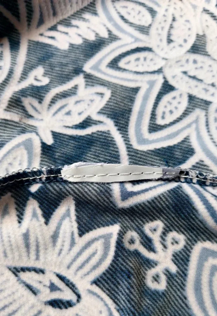 Étiquette coupée, je ne sais plus la marque. C'était une longue robe qui a été raccourcie rapidement avec des bandes thermicollantes