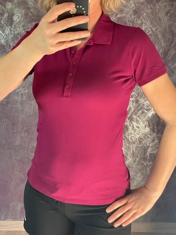 Titre : Polo femme Uniqlo Dry Stretch - Parfait état - Taille M Description : Polo femme de la marque Uniqlo, modèle Dry Stretch, en parfait état. Couleur framboise/violet profond, très flatteuse et facile à assortir. Tissu technique respirant et extensible, confortable pour le quotidien comme pour les activités légères. Coupe ajustée féminine, manches courtes, patte de boutonnage classique. Porté seulement quelques fois, aucun défaut. Taille : M (taille normalement) État : excellent état Envoi rapide. #lookrentrée #stylepolo #styleminimaliste #lookchic #looksobre #styleajuste #lotd