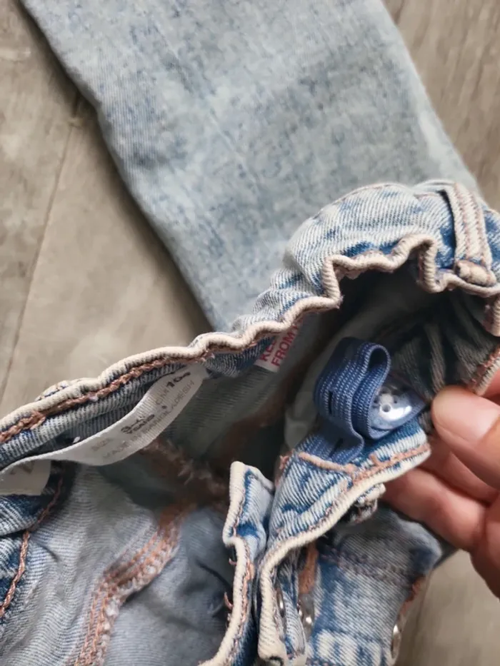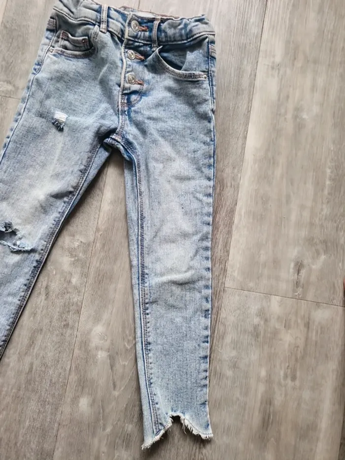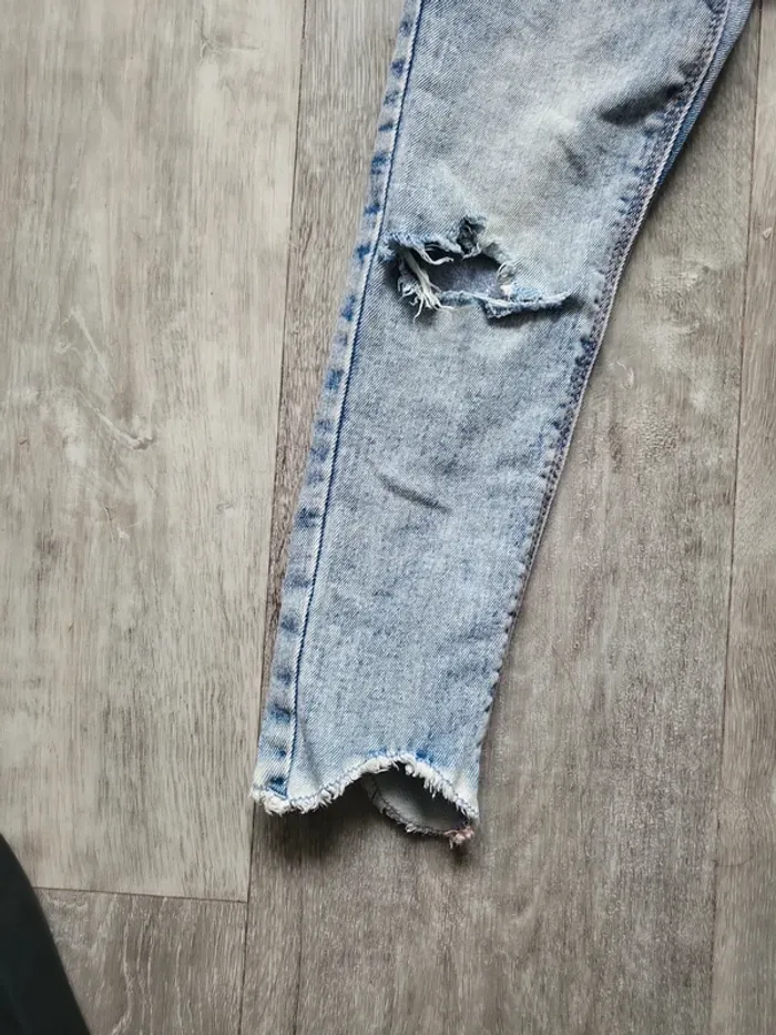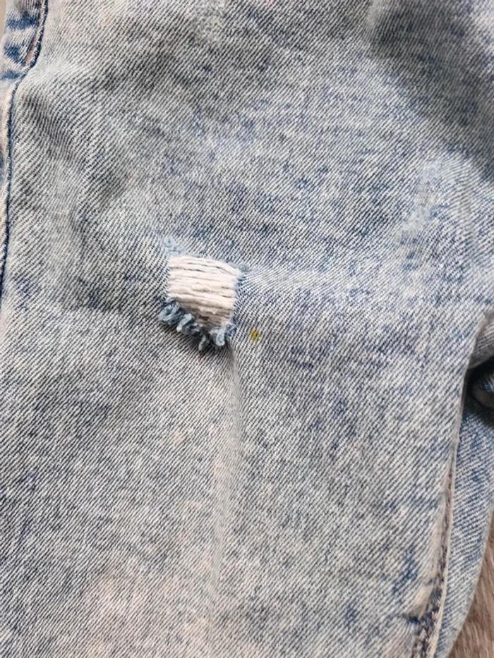 Porté la déchirure au niveau du genou s'est agrandie. Une petite tache (voir photo)