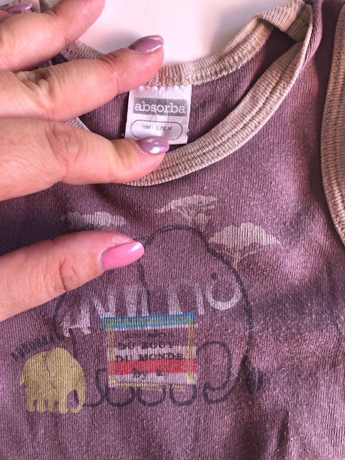 Lot de 2 bodies un à manches courtes et un sans manches pour l’été pour bébé garçon avec un éléphant Taille 6 mois - 67cm Marque Absorba