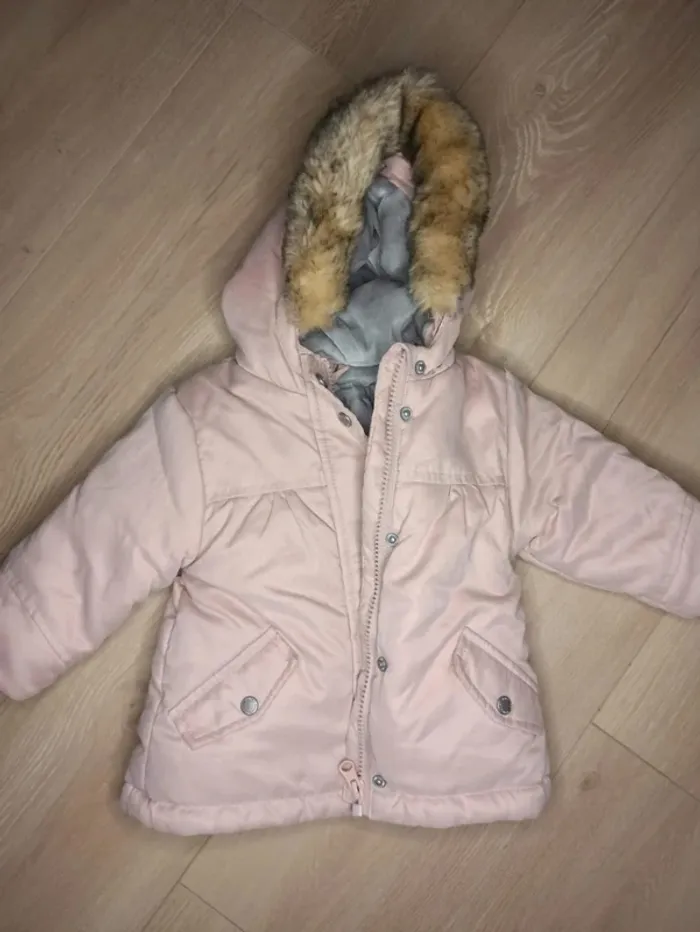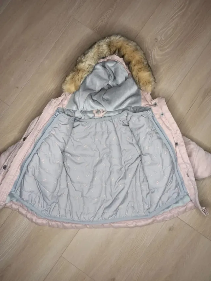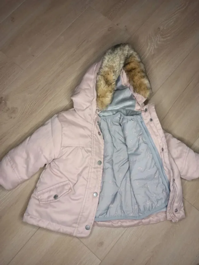 Manteau 3 en 1, bébé fille taille 9 mois neuf, lavé jamais porté, composé d'un manteau chaud avec fourrure qui se retire au niveau de la capuche et d'une veste plus légère fermée avec fermeture éclair et qui peut s'accrocher avec fermeture éclair au manteau rose. Marque vertbaudet #eloetgui_bebe_9mois #manteauneufbebefille #manteau3en1vertbaudet #manteauchaudbebefille #manteauhiverfille9mois