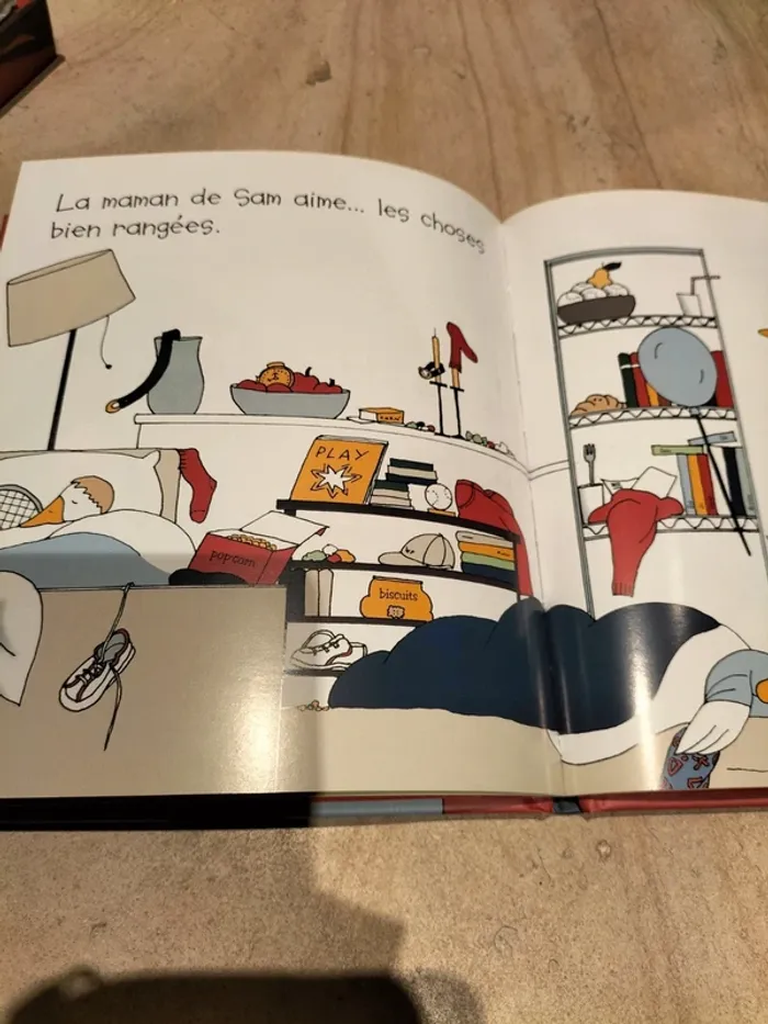 Livre la maman de Sam, couverture cartonnée 20 cm sur 20 cm environ sur l'histoire d'une maman normale, qui partage des moments avec son fils Sam ; simple et ludique avec de jolies illustrations. Livre en très bon état général à noter une légère usure des coins. Aux éditions GiMag.
