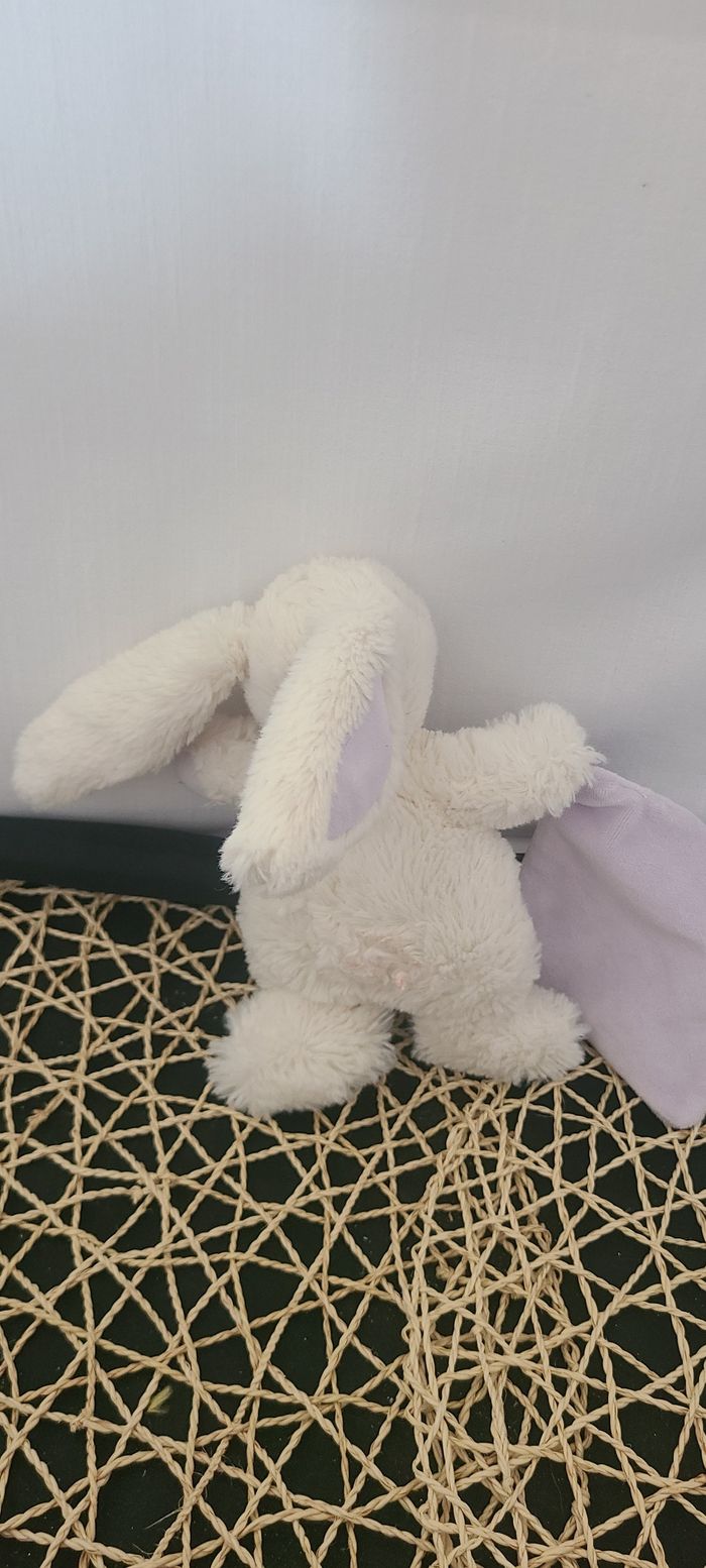 Doudou lapin blanc mouchoir mauve BABY NAT 3