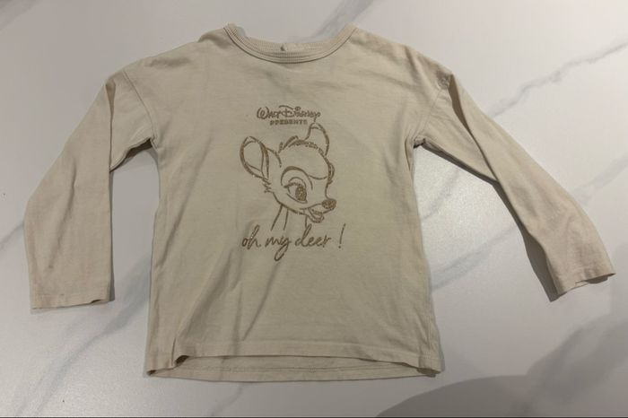 T-shirt manches longues de couleur crème/beige de la marque Disney bambi en taille 36 mois Très bon état