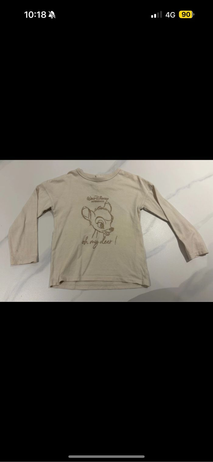 T-shirt manches longues crème/beige Disney bambi 36 mois - photo numéro 1