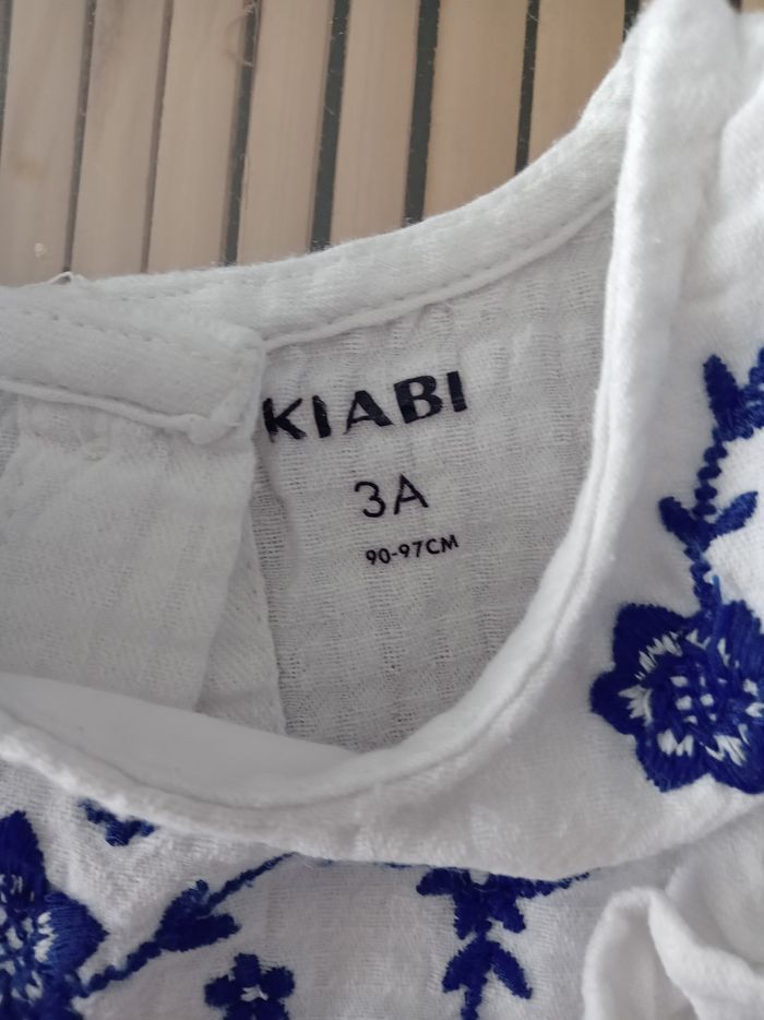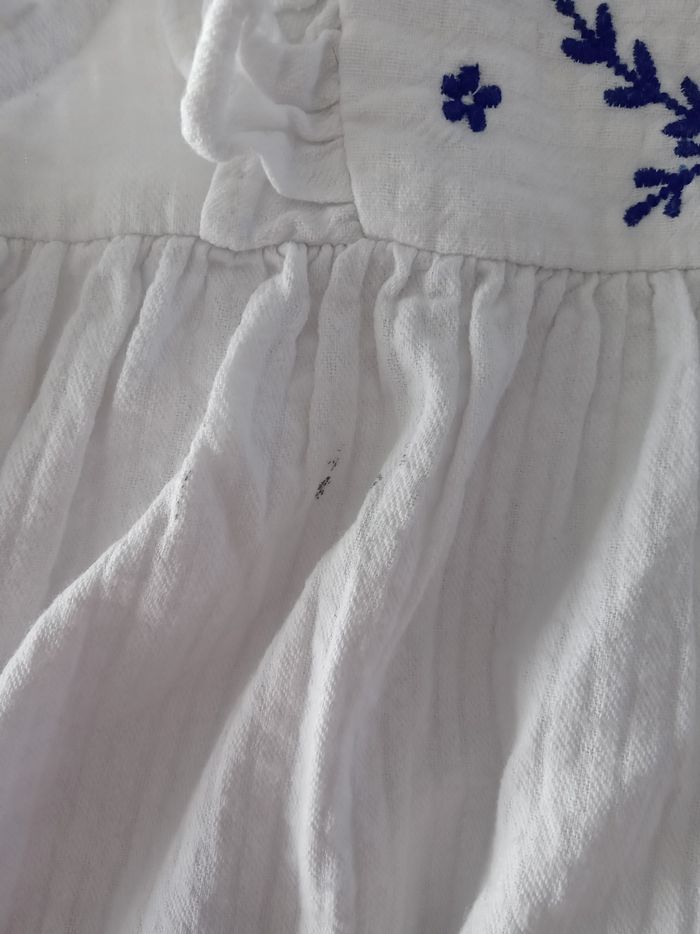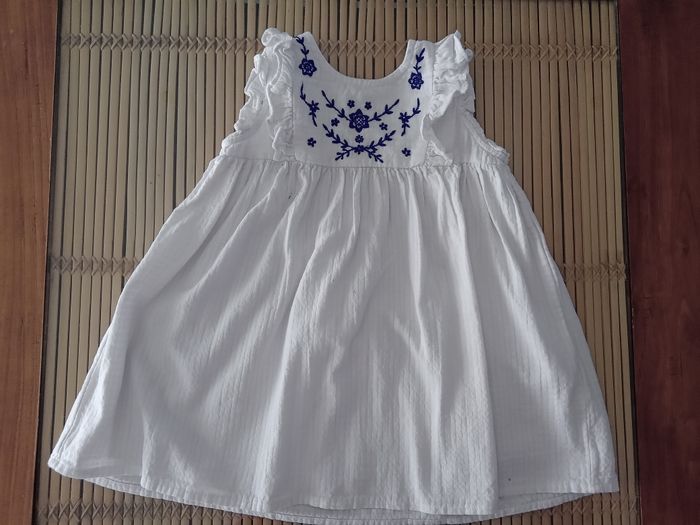 Magnifique robe blanche avec broderie bleue, doublée, légère, une toute petite tâche qui ne se voit pas avec le volume de la robe