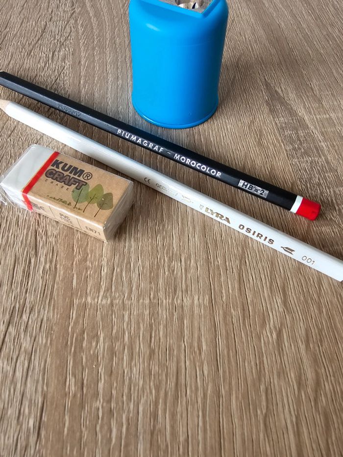 Lot taille crayon, crayons et gomme