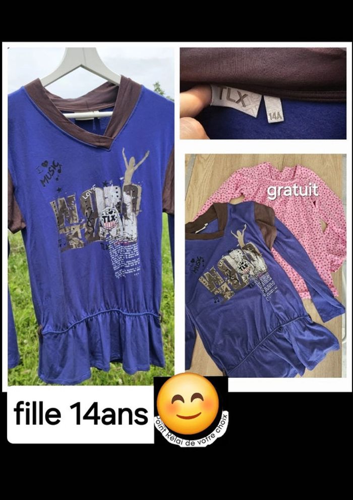 1 tee shirt manche longue 14 ans + 1 gratuit fille