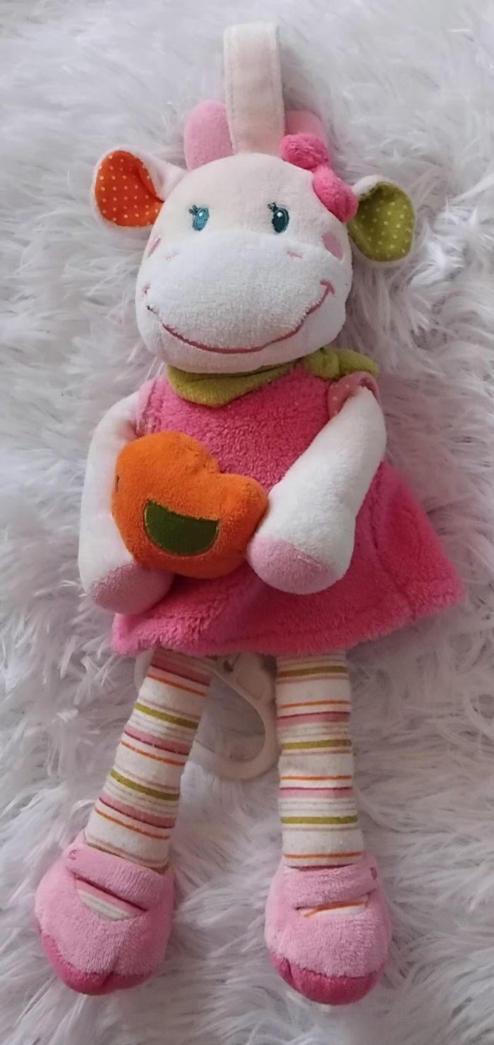 Doudou peluche vache musical - rose rose, oiseau orange- Nicotoy
