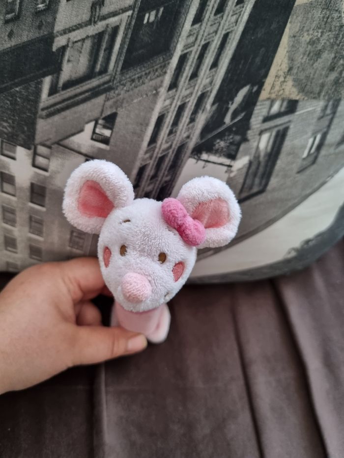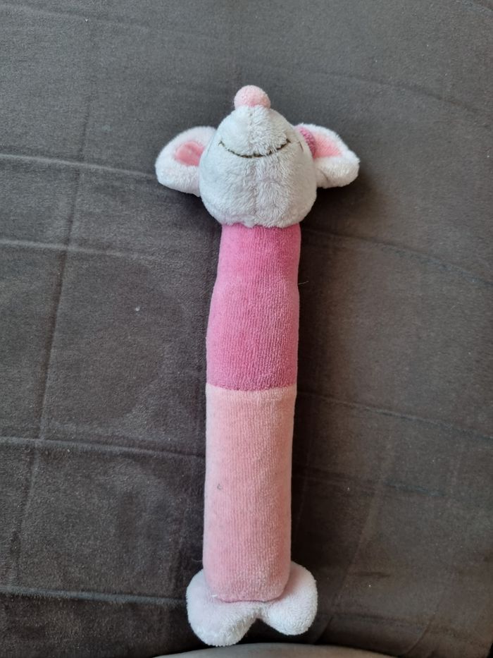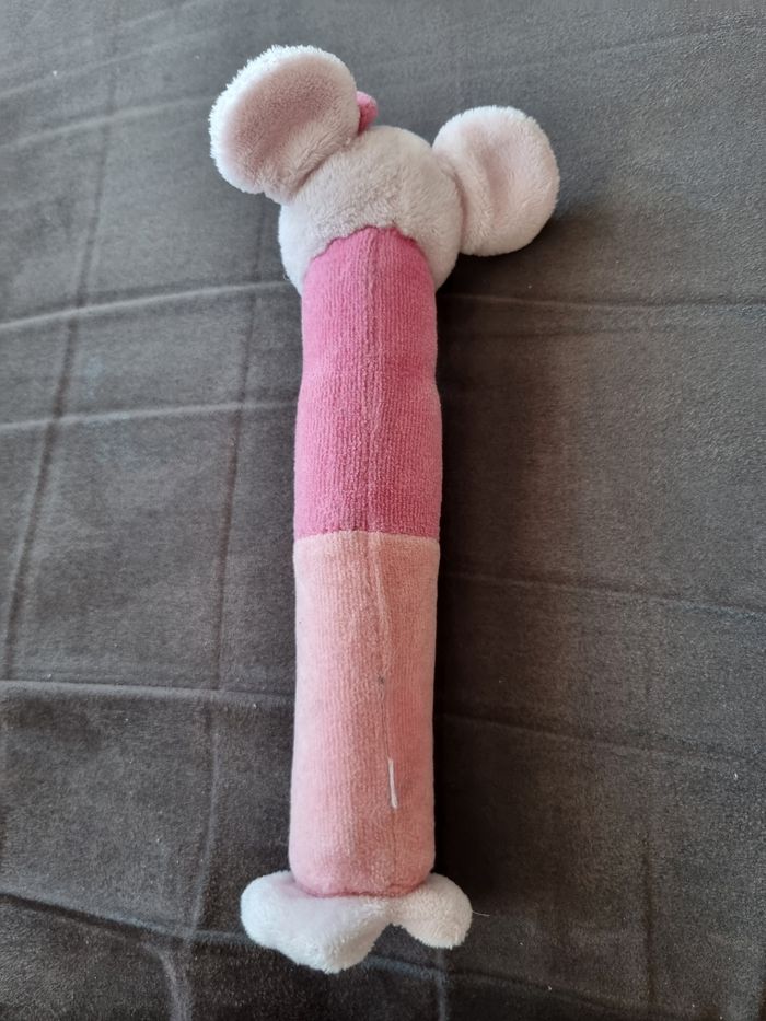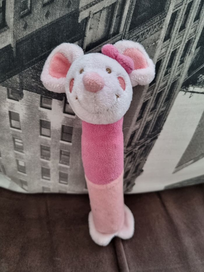 Jolie peluche pouet pouet en TBE. Motif petite souris rose pour bébé. Marque Kiabi