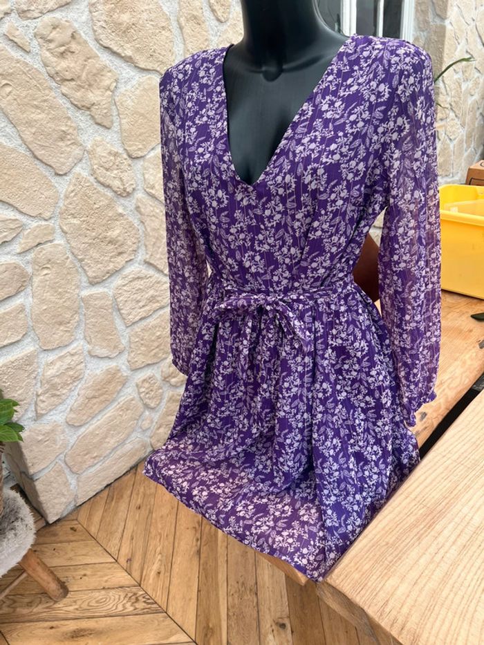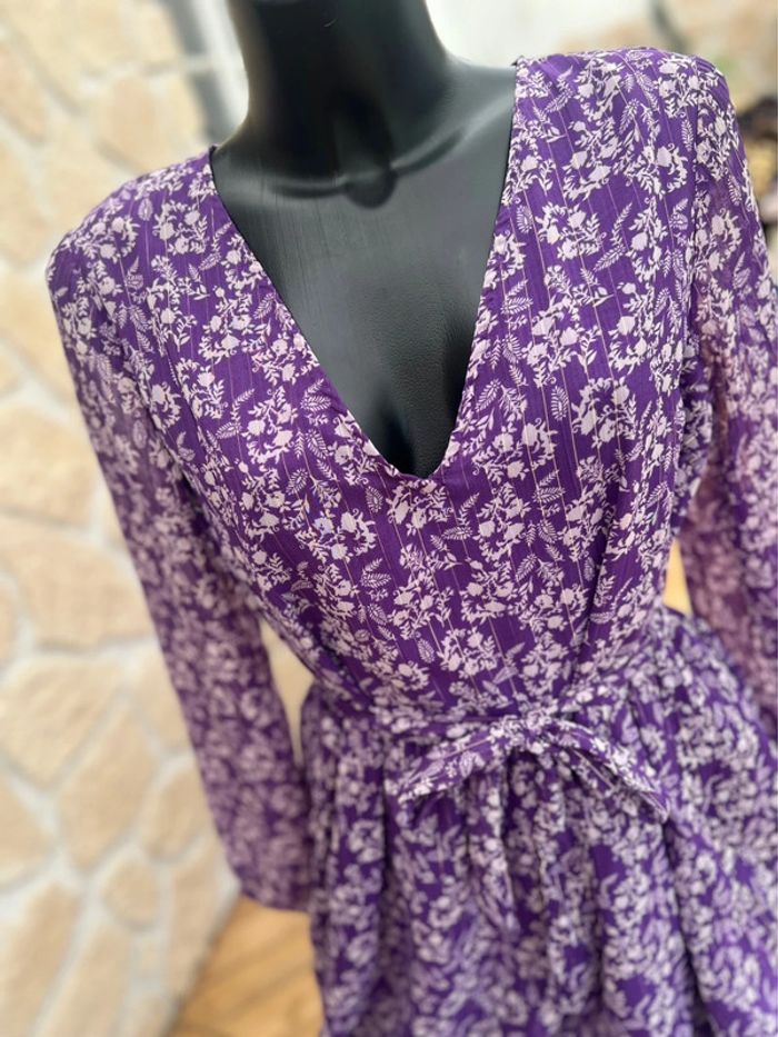 Robe kiabi taille L 40 violet à fleurs blanche voilage casual - photo numéro 3