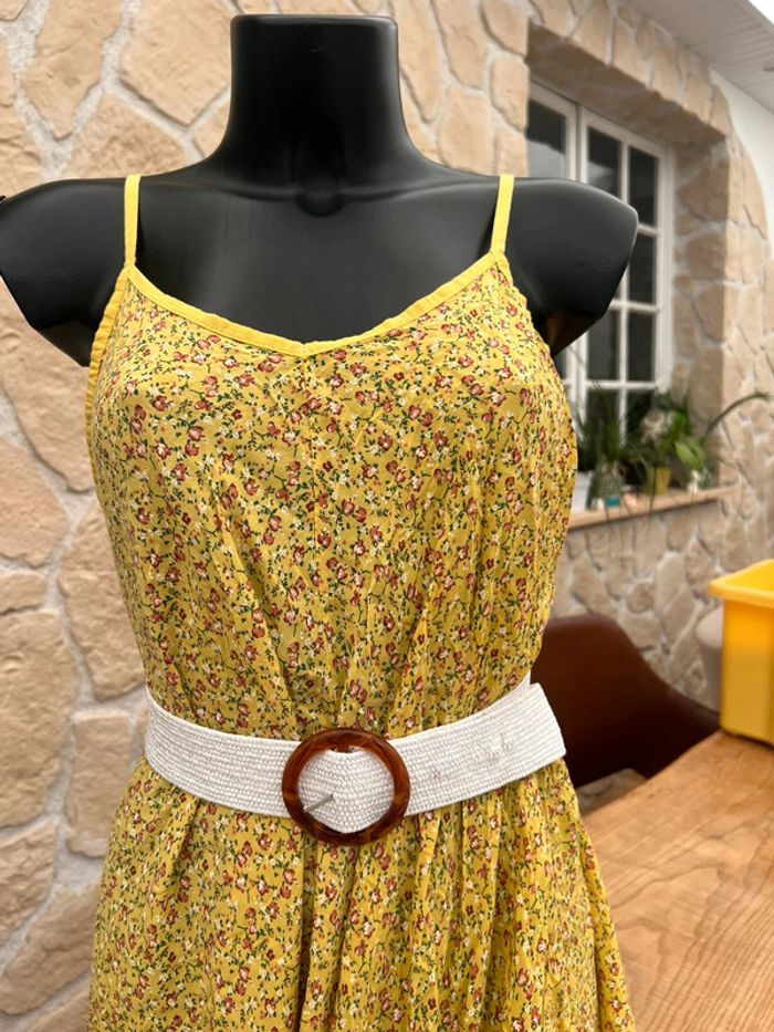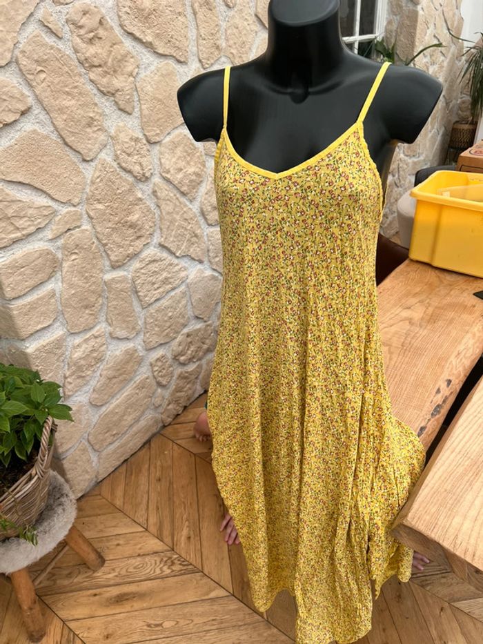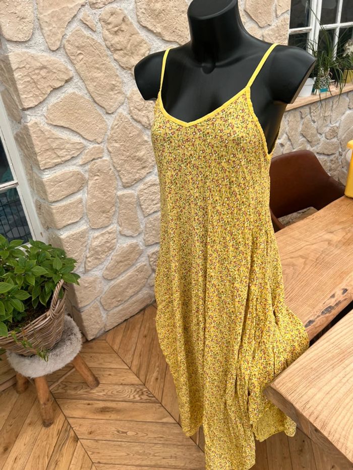 Robe T.U S M L 36 38 40 longue femme jaune à fleurs été asymétrique longue