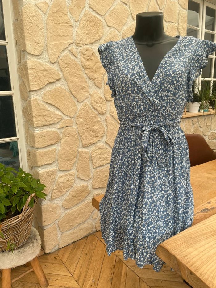 Robe d’été R&F fashion bleu à fleurs femme taille S 36 neuve étiqueté