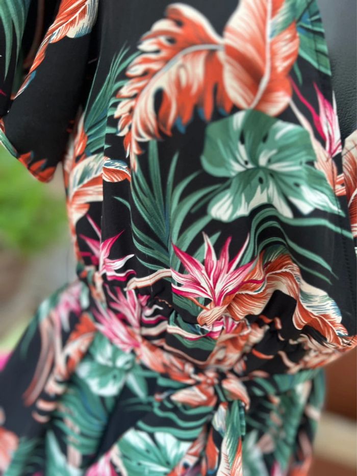 Robe shein taille M 38 été femme bleu marine à motif tropical - photo numéro 4