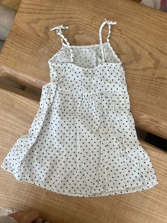 Robe longue blanche à pois noire tendance été 2025 4-5 ans - photo numéro 2