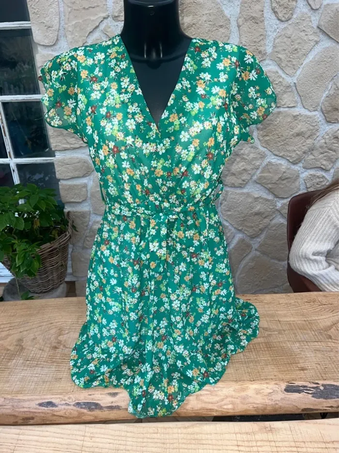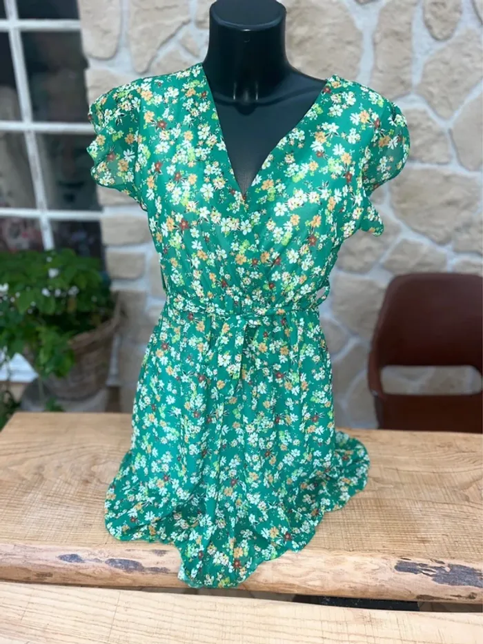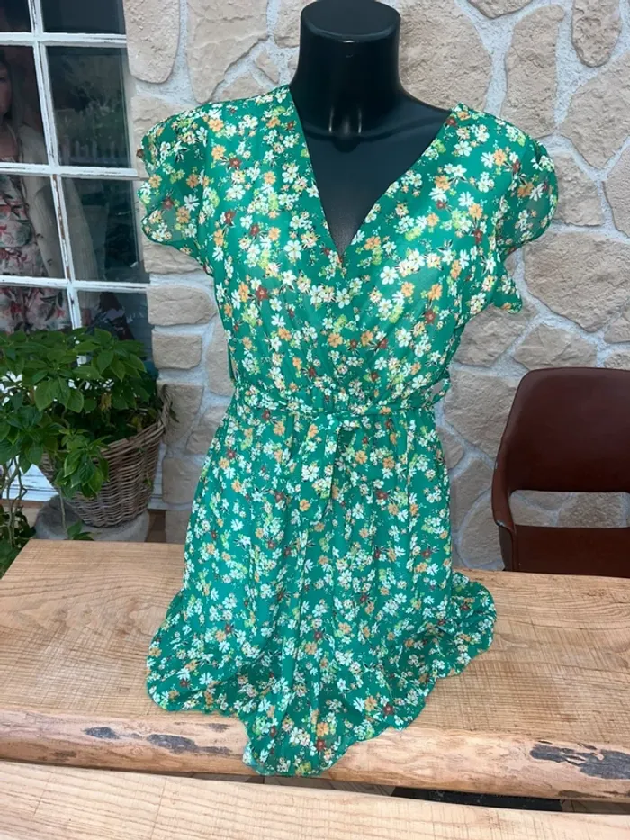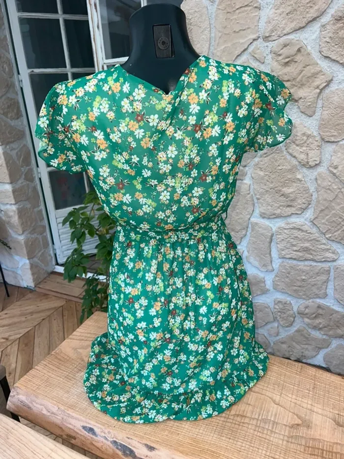 Robe verte fluide à fleurs femme été taille S M 36 38 Made in italy - photo numéro 1