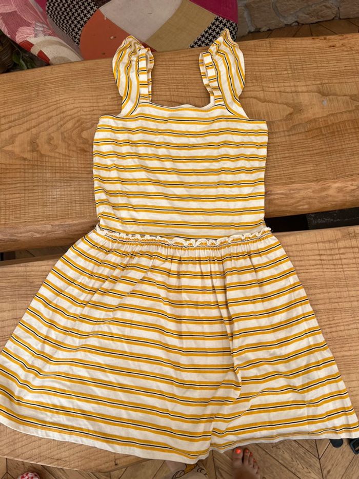 Robe kiabi jaune moutarde noire blanche à rayures 12 ans