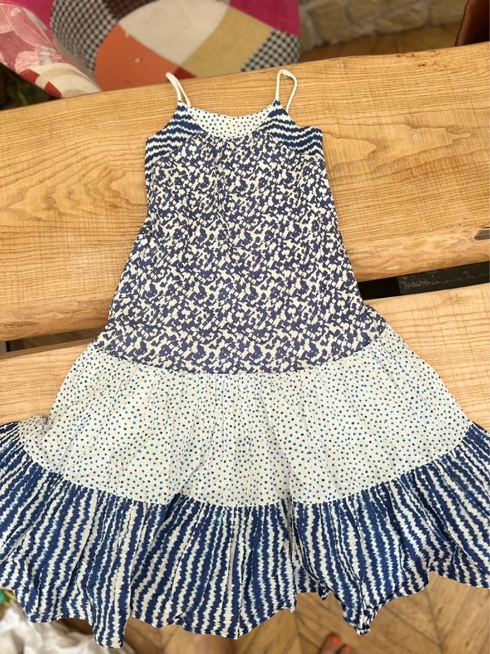 Robe catimini 10 ans bleu longue été blanche à bretelles - photo numéro 1