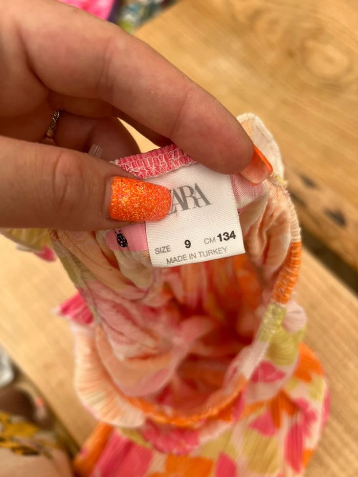 Combi d’été Fluide et légère Zara 9 ans Couleurs fluo a grosses fleurs Quelques taches discrètes voir photos